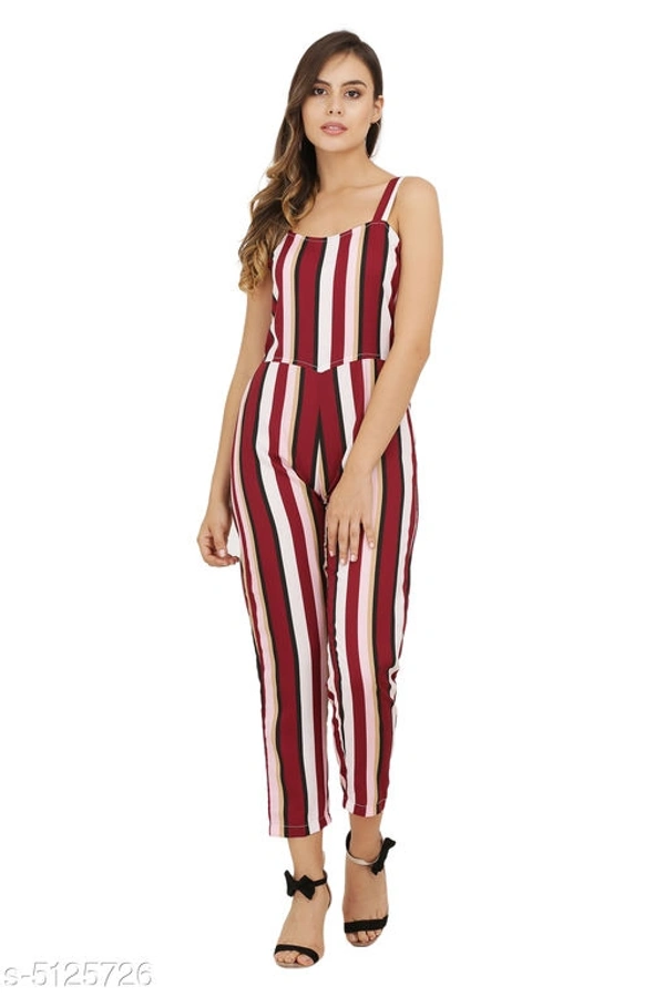 Charvi Graceful Crepe Women's Jumpsuits Fabric: Crepe Sleeve Length: Sleeveless Pattern: Striped Multipack: 1 Sizes: S (Bust Size: 36 in Length Size: 50 in Waist Size: 28 in) XL (Bust Size: 42 in Length Size: 50 in Waist Size: 34 in) L (Bust Size: 40 in Length Size: 50 in Waist Size: 32 in) M (Bust Size: 38 in Length Size: 50 in Waist Size: 30 in) Country of Origin: India