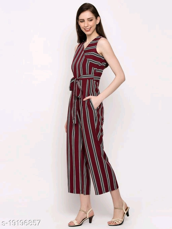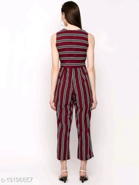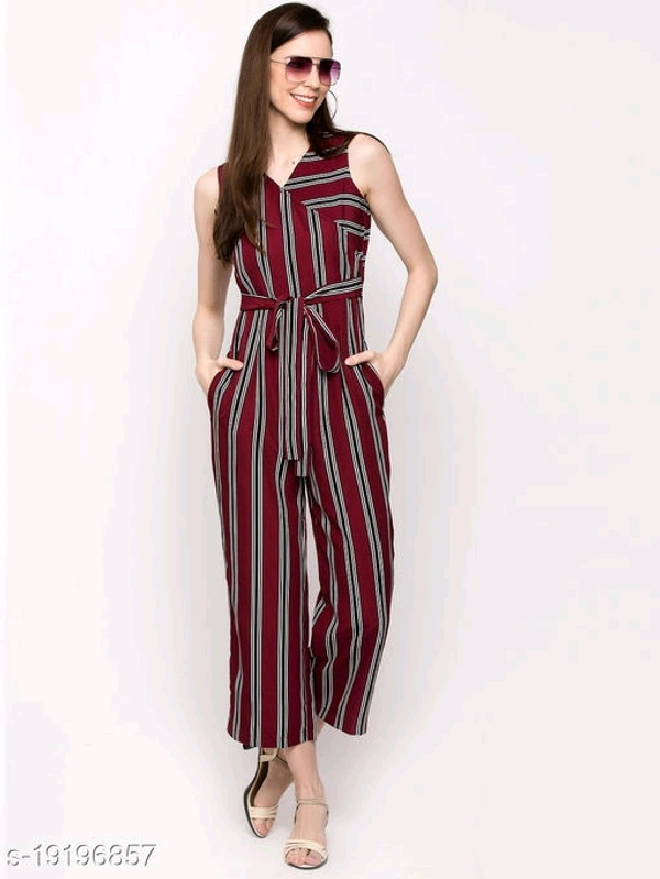 Classic Latest Women Jumpsuits Fabric: Poly Crepe Sleeve Length: Sleeveless Multipack: 1 Sizes: S (Bust Size: 35 in, Length Size: 52 in, Waist Size: 29 in, Hip Size: 38 in) XL (Bust Size: 41 in, Length Size: 53 in, Waist Size: 36 in, Hip Size: 45 in) XS (Bust Size: 33 in, Length Size: 51 in, Waist Size: 27 in, Hip Size: 36 in) L (Bust Size: 40 in, Length Size: 53 in, Waist Size: 34 in, Hip Size: 43 in) M (Bust Size: 38 in, Length Size: 52 in, Waist Size: 31 in, Hip Size: 40 in) Country of Origin: India