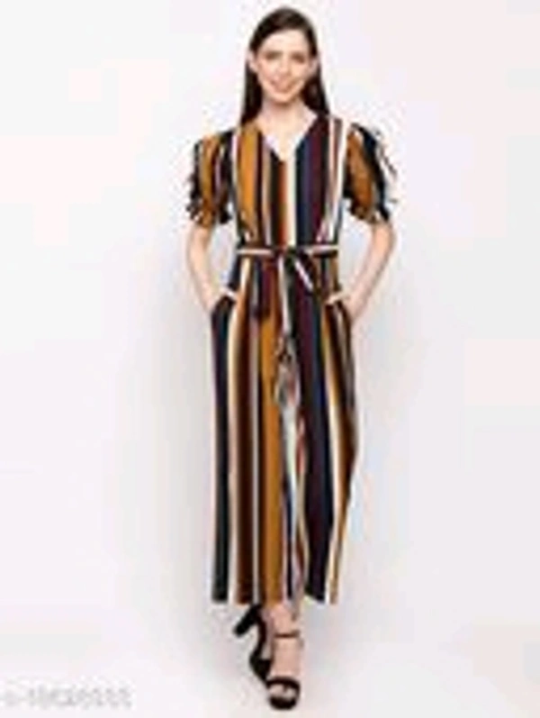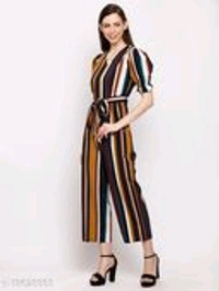 Comfy Sensational Women Jumpsuits Fabric: Poly Crepe Sleeve Length: Short Sleeves Pattern: Striped Multipack: 1 Sizes: S (Bust Size: 35 in, Length Size: 52 in, Waist Size: 29 in, Hip Size: 38 in) XL (Bust Size: 41 in, Length Size: 53 in, Waist Size: 36 in, Hip Size: 45 in) XS (Bust Size: 33 in, Length Size: 51 in, Waist Size: 27 in, Hip Size: 36 in) L (Bust Size: 40 in, Length Size: 53 in, Waist Size: 34 in, Hip Size: 43 in) M (Bust Size: 38 in, Length Size: 52 in, Waist Size: 31 in, Hip Size: 40 in) Country of Origin: India