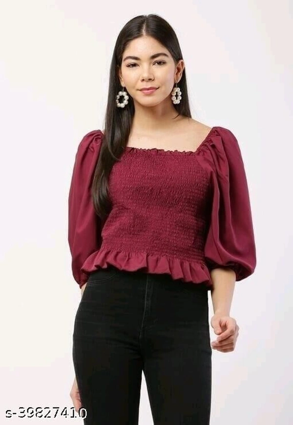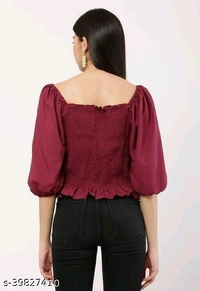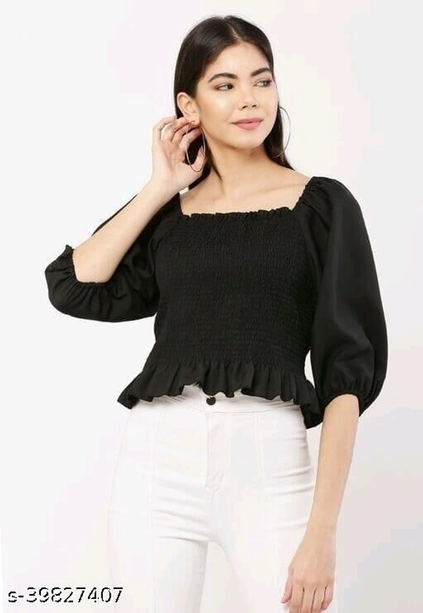 Comfy Partywear Women Tops & Tunics Fabric: Poly Crepe Sleeve Length: Three-Quarter Sleeves Pattern: Solid Multipack: 1 Sizes: S, M, L, XL Easy Returns Available In Case Of Any Issue