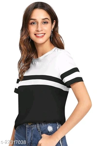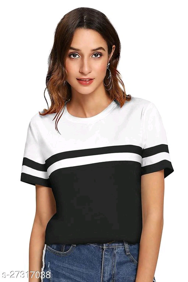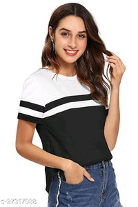 Popster Black Solid Cotton Round Neck Regular Fit Half Sleeve Womens T-shirt
