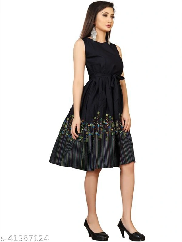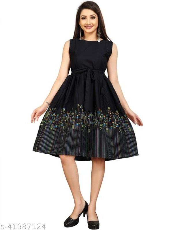 This is floral printed western Dress which is made of fine quality crepe fabric and also it is stitched as western look. belt which is create tredy look on your outfit. floral printed western dress has knee length and flared dress is available it can wear causual, party, function etc it is unique in pattern and sleeveless (short sleeve attached inside) is available fabric is soft so it is comfortable to all day. we have also manufacture wester wear dress , party wear dress , one piece dress , bodycon dress , long gown , printed kurti , straight kurti, a-line dress , floral printed dress,low price dress , light weight dress , rayon kurti , straight dress , flared dress , skater dress with unique design.