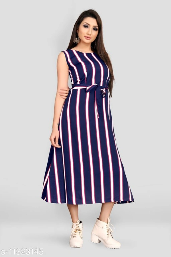 Trendy Fancy Maxi Dress With Belt Fabric: Poly Crepe Sleeve Length: Sleeveless Pattern: Printed Multipack: 1 Sizes: XXL (Bust Size: 44 in, Length Size: 47 in) Country of Origin: India
