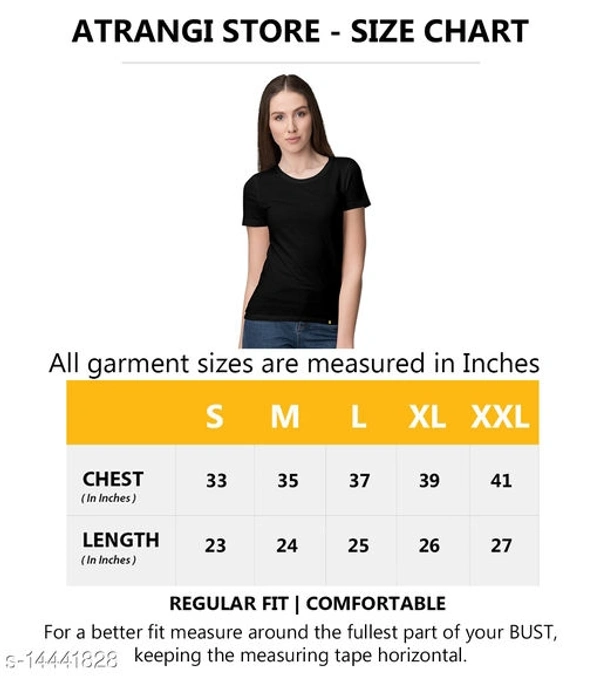Comfy Ravishing Women Tshirts Fabric: Cotton Sleeve Length: Short Sleeves Pattern: Printed Multipack: 1 Sizes:4XL (Bust Size: 41 in) S (Bust Size: 33 in) XL (Bust Size: 39 in) L (Bust Size: 37 in) M (Bust Size: 35 in) XXL (Bust Size: 41 in) XXXL (Bust Size: 43 in) Country of Origin: India