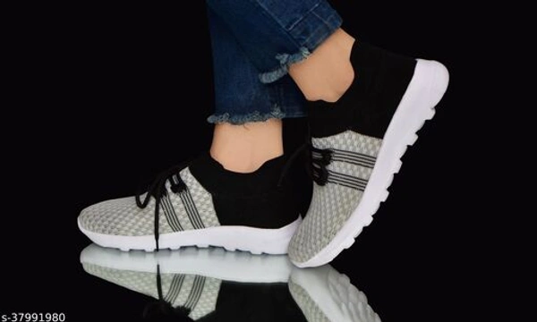 Modern Fashionable Women Sports Shoes & Floaters Material: Mesh Sole Material: EVA Fastening & Back Detail: Lace Up Pattern: Solid Multipack: 1 Sizes: IND-6, IND-4 Country of Origin: India