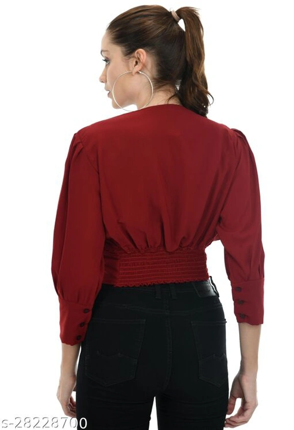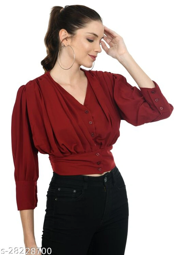 Catalog Name:*Comfy Fashionable Women Tops & Tunics Fabric: Poly Crepe Sleeve Length: Three-Quarter Sleeves Pattern: Solid Multipack: 1 Sizes: S (Bust Size: 36 in) M (Bust Size: 38 in) L (Bust Size: 40 in) Free Size Easy Returns Available In Case Of Any Issue