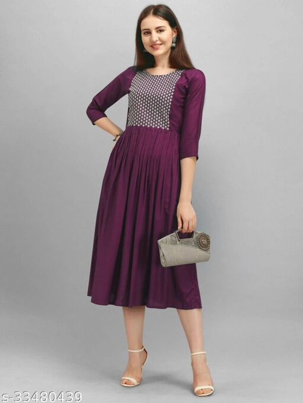 Stylish Glamorous Women Dresses Fabric: Rayon Sleeve Length: Three-Quarter Sleeves Pattern: Embroidered Multipack: 1 Sizes: XL (Bust Size: 42 in, Length Size: 46 in) L (Bust Size: 40 in, Length Size: 46 in) M (Bust Size: 38 in, Length Size: 46 in) XXL (Bust Size: 44 in, Length Size: 46 in) Here is the ambroiaded kurta by Shree Ramkrishna Fab. Stylish Look Can Be Effortlessly Achieved By Wearing This kurti. Double your fashion flair as you wear this Beautiful Kurti. It is a Rayon fabric kurta which makes it an apt choice for all season.it assures a soft and soothing touch against the skin. Country of Origin: India