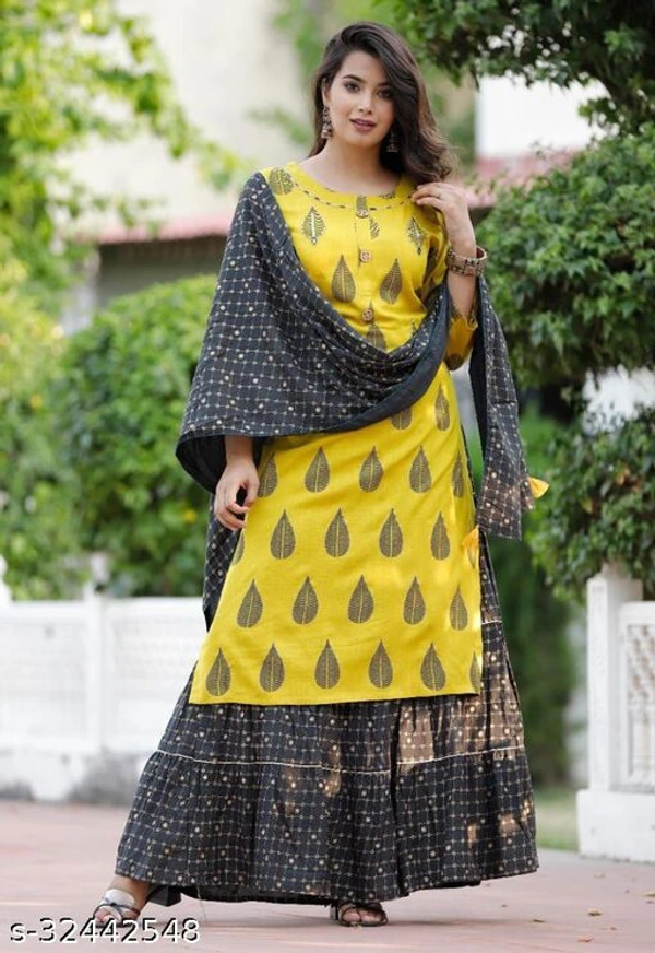 KURTI WITH SKIRT AND DUPPTA Kurta Fabric: Rayon Bottomwear Fabric: Rayon Fabric: Rayon Set Type: Kurta With Dupatta And Bottomwear Bottom Type: Skirt Sizes: 6XL , 7XL available as per order Country of Origin: India