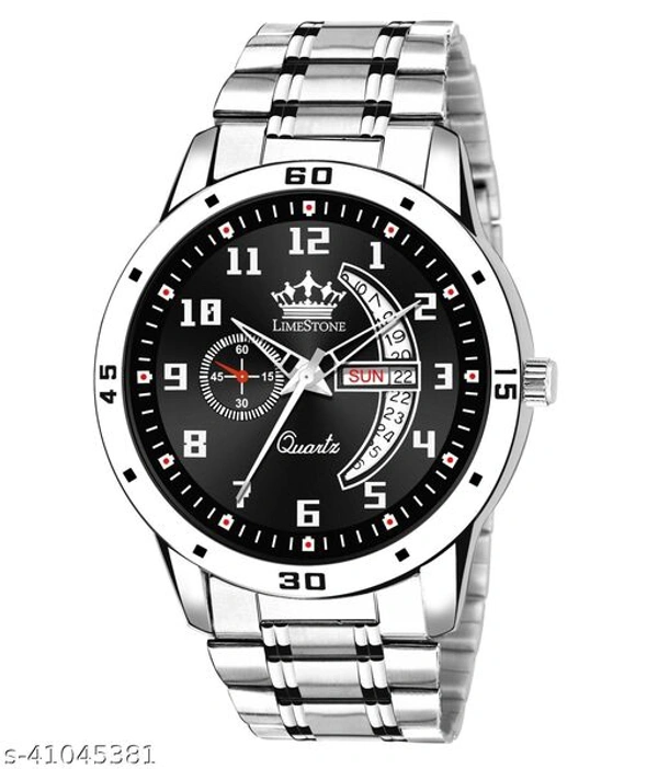 Latest Men Analog Watches Strap Material: Stainless Steel Case/Bezel Material: Alloy Clasp Type: Stainless Steel Buckle Date Display: Yes Display Type: Analog Mechanism: Quartz Power Source: Battery Powered Shock Resistance: Yes Water Resistance: Yes Sizes: Free Size (Dial Diameter Size: 45 mm) Country of Origin: India