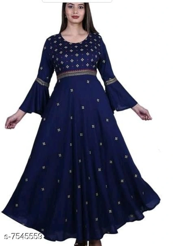 Women's Embroidered Rayon Long Anarkali Kurti