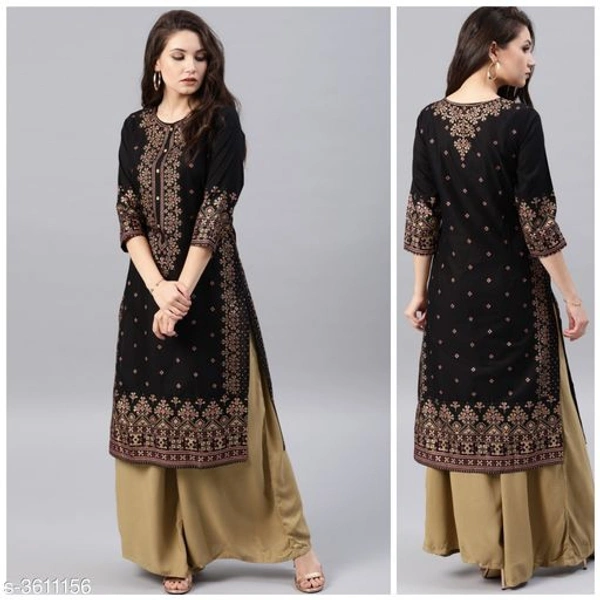 Women Rayon A-line Printed Long Kurti With Palazzos