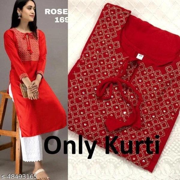 Myra Graceful Kurtis Fabric: Viscose Rayon Combo of: Single Sizes: XL (Bust Size: 42 in) L (Bust Size: 40 in) XXL (Bust Size: 44 in) M (Bust Size: 38 in) Country of Origin: India