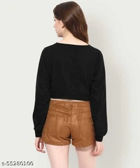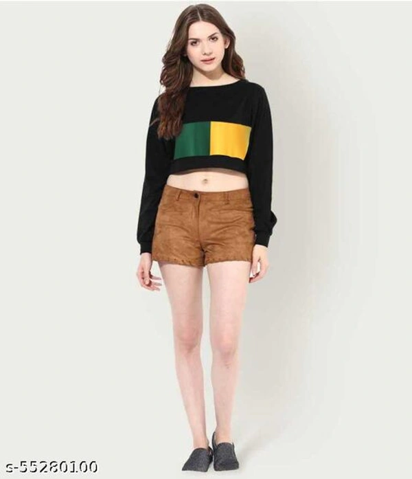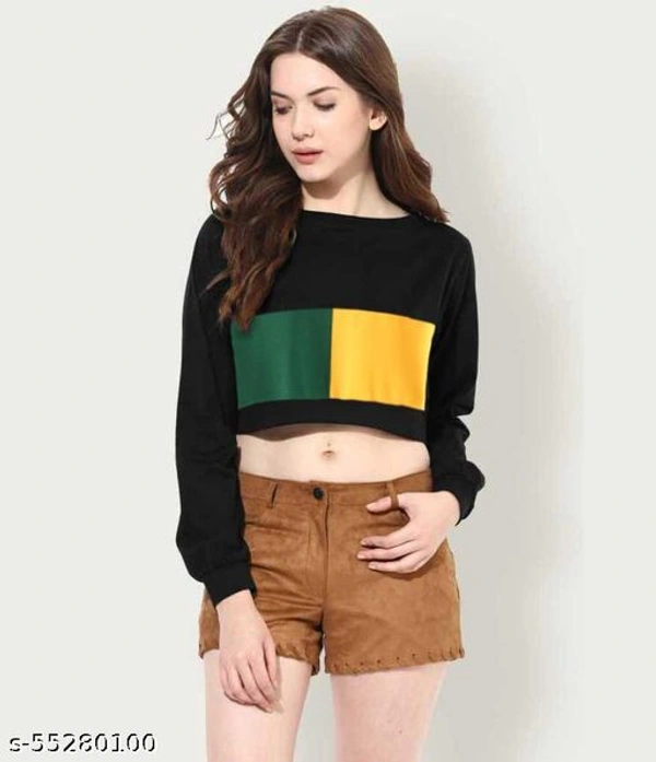 Women Casual Cut N Sew Round Neck Full Sleeves Crop Top