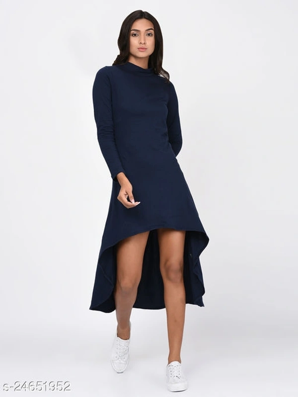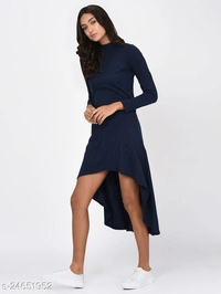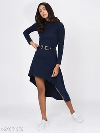A sassy yet elegant appeal makes this stylish navy high low dress a must have staple for your wardrobe collection for a diverse set of occasions. Team it with a statement clutch and platform pumps and nice belt to complete your look.