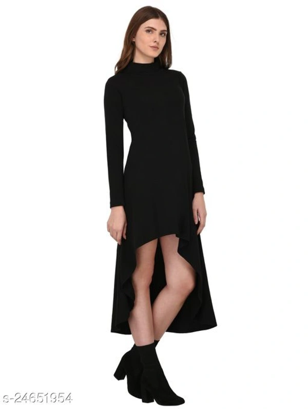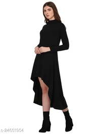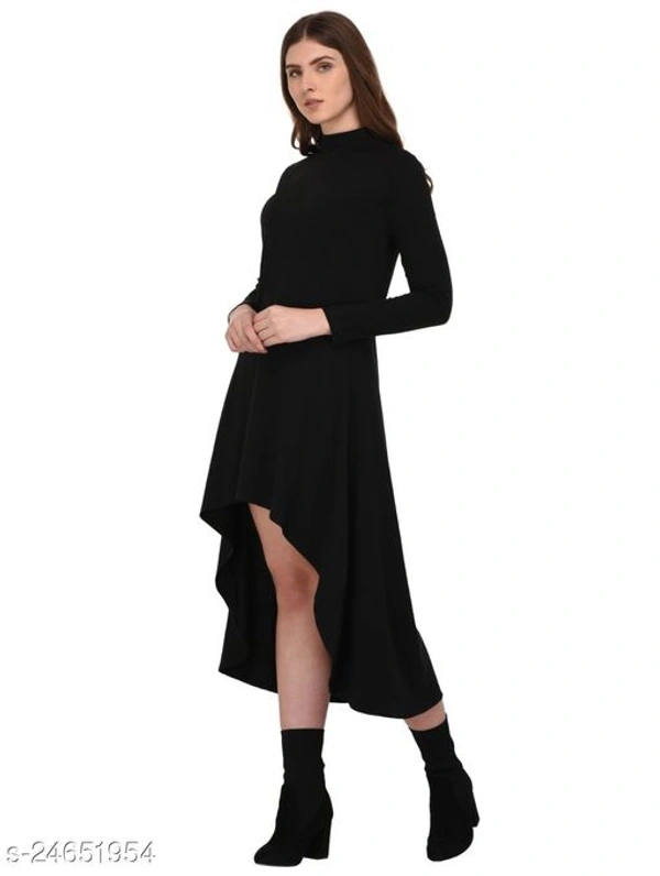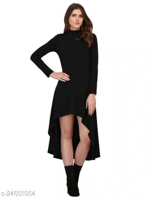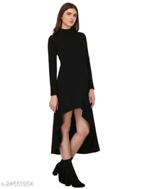 A sassy yet elegant appeal makes this stylish black high low dress a must have staple for your wardrobe collection for a diverse set of occasions. Team it with a statement clutch and platform pumps and nice belt to complete your look.