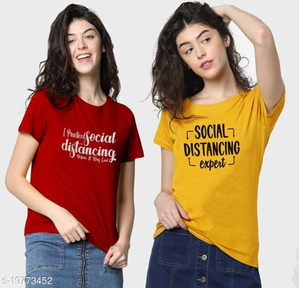 Pack of 2 Typography Conversation Tshirts Fabric: Cotton Sleeve Length: Short Sleeves Pattern: Printed Multipack: 2 Sizes: S (Bust Size: 34 in) XL (Bust Size: 40 in) L (Bust Size: 38 in) M (Bust Size: 36 in) XXL (Bust Size: 42 in) Country of Origin: India