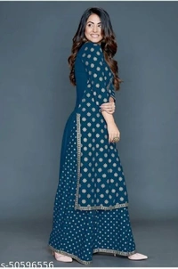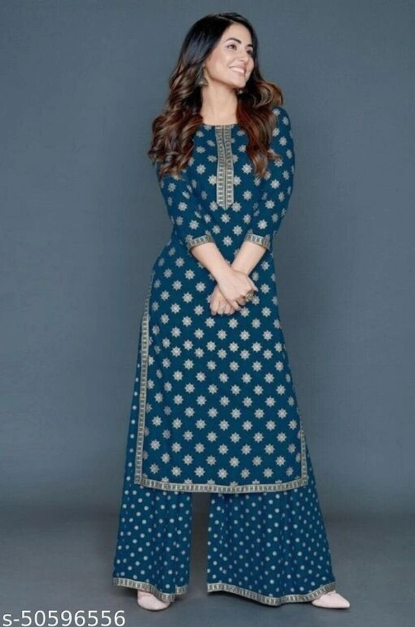 SREI Women's Clothing Ethnic Wear Kurta With Palazzo Set This is Designed as per the Current trends to keep you in sync with high fashion and other occasion, it will keep you comfortable all day long. The lovely design forms a substantial feature of this wear. It looks stunning every time you match it with accessories. This attractive Kurta With Palazzo set will surely fetch you compliments for your rich sense of style.