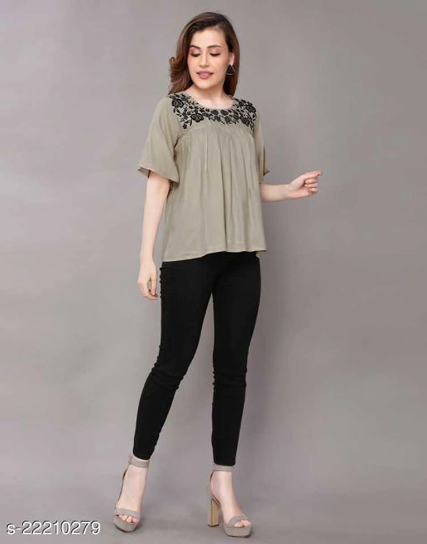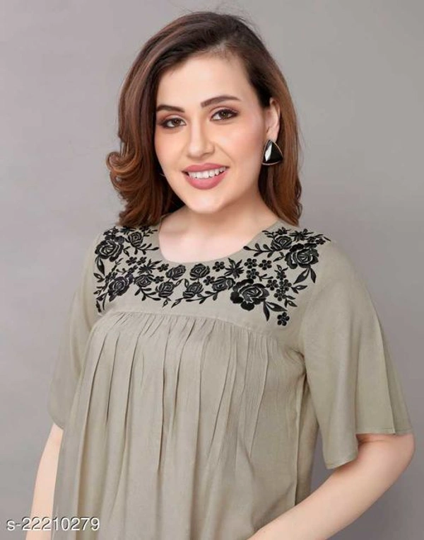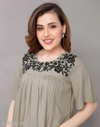 Comfy Sensational Women Tops & Tunics Fabric: Rayon Sleeve Length: Short Sleeves Pattern: Embroidered Multipack: 1 Sizes: XS, S, M, L, XL, XXL, XXXL, 4XL Easy Returns Available In Case Of Any Issue
