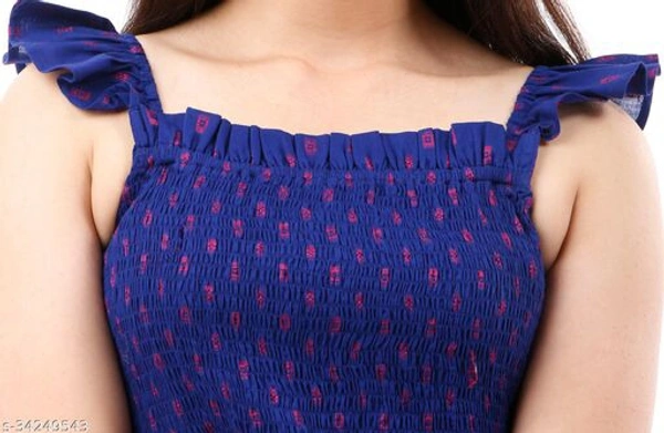Classy Feminine Women Tops & Tunics Fabric: Cotton Sleeve Length: Sleeveless Pattern: Woven Design Multipack: 1 Sizes: S, XL, XS, L, XXL, M Reinvent your casual style by pairing Art of Clothing blue color top with a pair of jeans or jeggings. Working a woven theme for contemporary charm, the cropped silhouette comes rendered from a soft pure-cotton fabric for endless breathability. Country of Origin: India