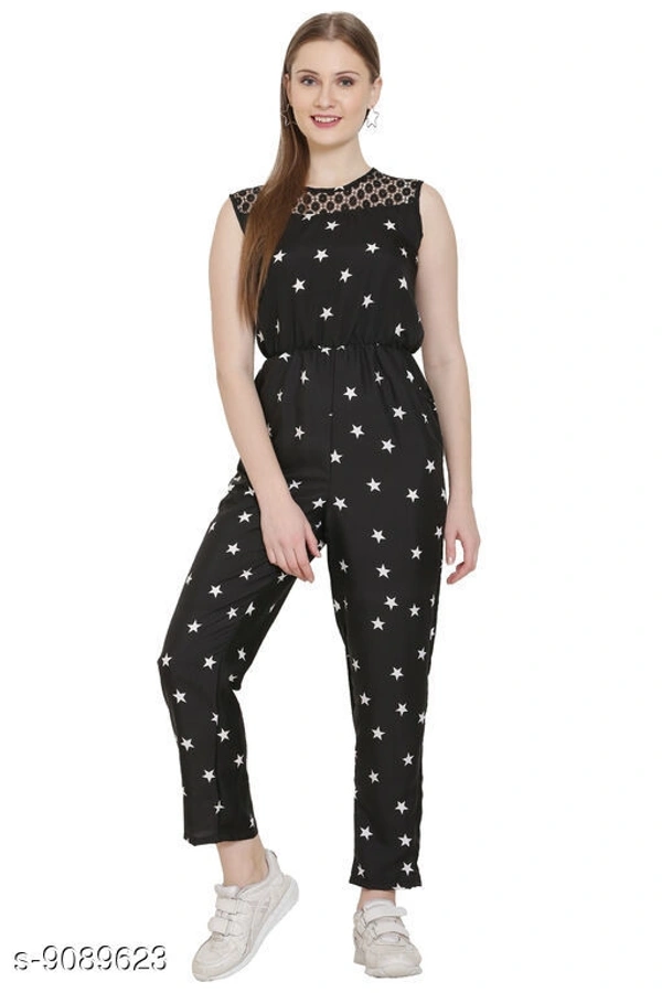 Stylish Jumpsuits Fabric: Poly Crepe Sleeve Length : Sleeveless Pattern : Printed Multipack : 1 Sizes: S ( Bust Size : 36 in Length Size : 49 in ) M ( Bust Size : 38 in Length Size : 49 in ) L ( Bust Size : 40 in Length Size : 49 in ) XL ( Bust Size : 42 in Length Size : 49 in ) Country of Origin: India Fabric: Poly Crepe Sleeve Length : Sleeveless Pattern : Printed Multipack : 1 Sizes: S ( Bust Size : 36 in Length Size : 49 in ) M ( Bust Size : 38 in Length Size : 49 in ) L ( Bust Size : 40 in Length Size : 49 in ) XL ( Bust Size : 42 in Length Size : 49 in ) Country of Origin: India