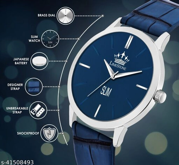 Stylish Men Watches Strap Material: Faux Leather/Leatherette Display Type: Analogue Size: Free Size (Dial Diameter Size: 38 mm) Multipack: 1 Slim Watch Country of Origin: India