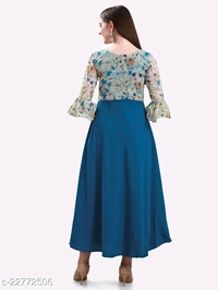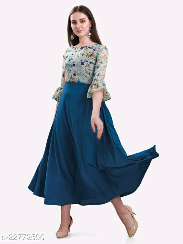 Trendy Glamorous Women Dresses Fabric: Crepe Sleeve Length: Three-Quarter Sleeves Pattern: Printed Multipack: 1 Sizes: S (Bust Size: 36 in, Length Size: 51 in) XL (Bust Size: 42 in, Length Size: 51 in) L (Bust Size: 40 in, Length Size: 51 in) M (Bust Size: 38 in, Length Size: 51 in) XXL (Bust Size: 44 in, Length Size: 51 in) Country of Origin: India