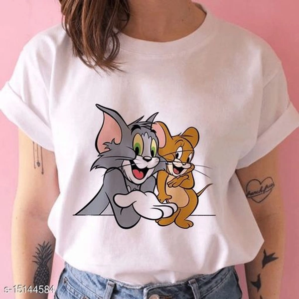 TRENDY PRINTED WHITE T-SHIRT FOR WOMEN Fabric: Cotton Sleeve Length: Short Sleeves Pattern: Printed Multipack: 1 Country of Origin: India