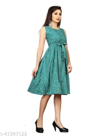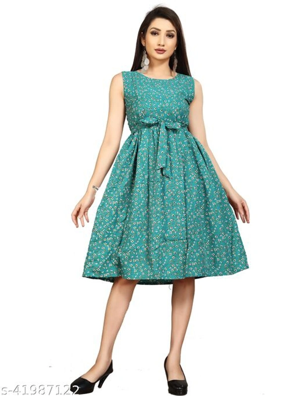 This is floral printed western Dress which is made of fine quality crepe fabric and also it is stitched as western look. belt which is create tredy look on your outfit. floral printed western dress has knee length and flared dress is available it can wear causual, party, function etc it is unique in pattern and sleeveless (short sleeve attached inside) is available fabric is soft so it is comfortable to all day. we have also manufacture wester wear dress , party wear dress , one piece dress , bodycon dress , long gown , printed kurti , straight kurti, a-line dress , floral printed dress,low price dress , light weight dress , rayon kurti , straight dress , flared dress , skater dress with unique design.