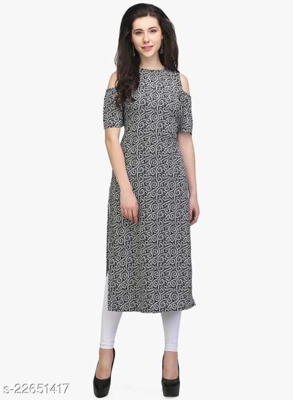 Women's Poly Crepe Straight Kurti Fabric: Poly Crepe Sleeve Length: Short Sleeves Pattern: Printed Combo of: Single Country of Origin: India