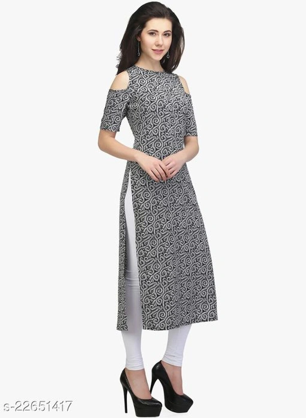 Women's Poly Crepe Straight Kurti Fabric: Poly Crepe Sleeve Length: Short Sleeves Pattern: Printed Combo of: Single Country of Origin: India