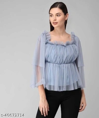 Trendy Fashionista Women Tops & Tunics Fabric: Net Sleeve Length: Three-Quarter Sleeves Pattern: Solid Multipack: 1 Sizes: S, M, L Easy Returns Available In Case Of Any Issue