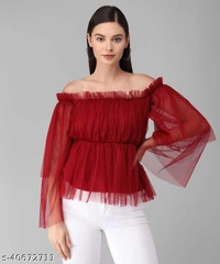 Trendy Fashionista Women Tops & Tunics Fabric: Net Sleeve Length: Three-Quarter Sleeves Pattern: Solid Multipack: 1 Sizes: S, M, L Easy Returns Available In Case Of Any Issue