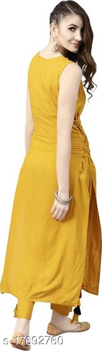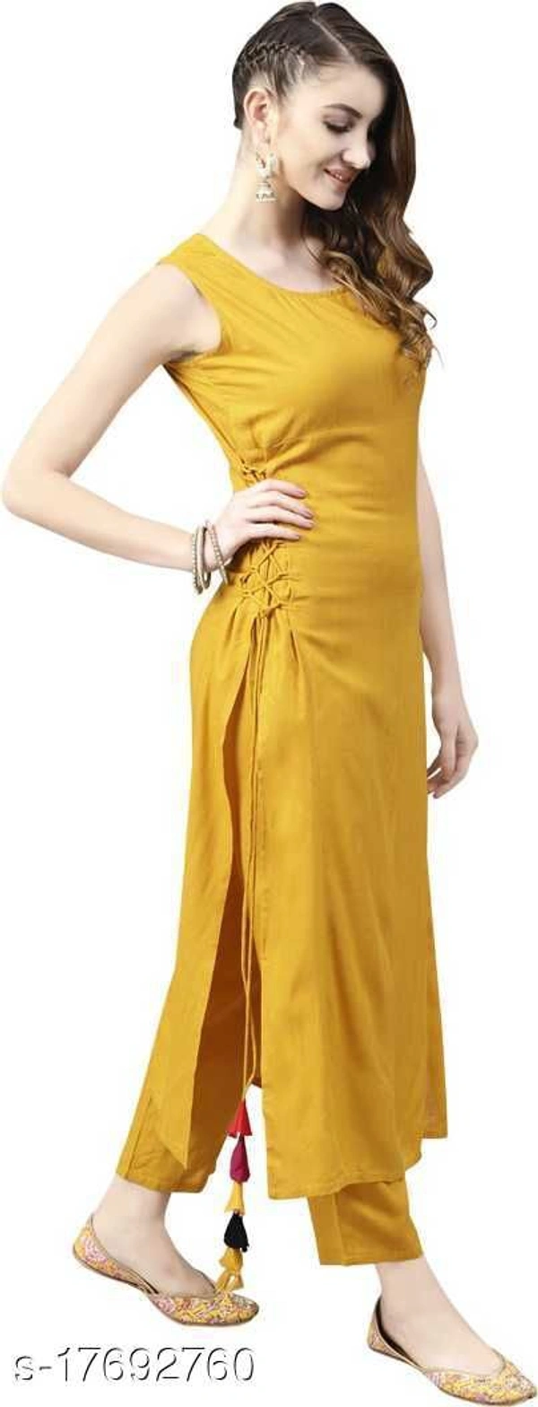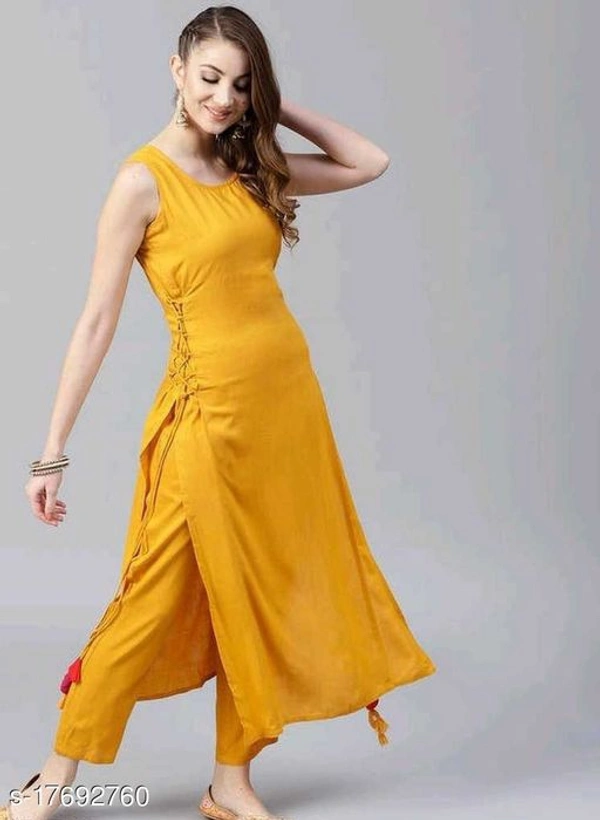 Women Rayon A-line Solid Mustard Kurti
