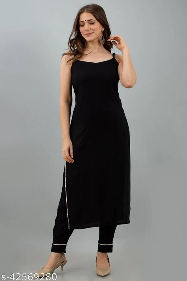 Attractive Women's Black Kurti Pant Set Of Rayon
