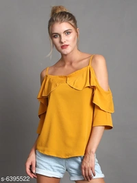 Women's Printed Mustard Crepe Top
