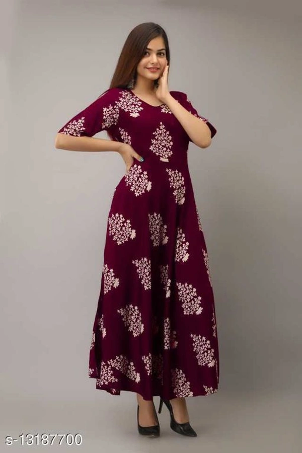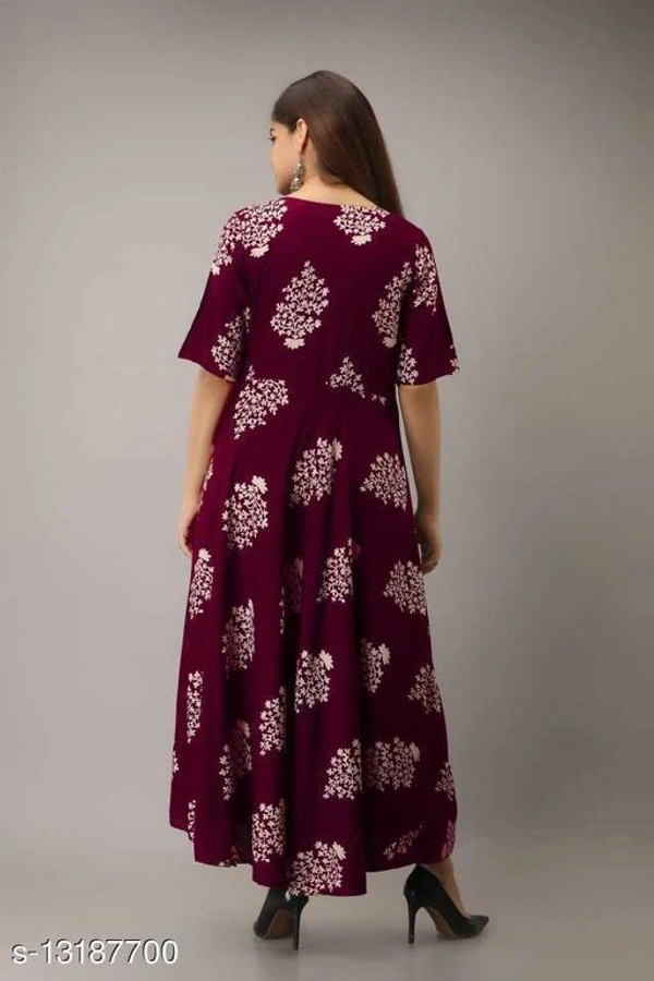 Women's Printed Full Long Gown Dress Kurti for Casual and Work wear for Women and Girls Fabric: Rayon Combo of: Single Country of Origin: India