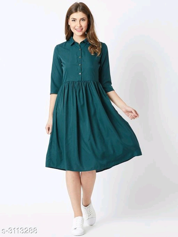 Women's Solid Teal Polyester Dress