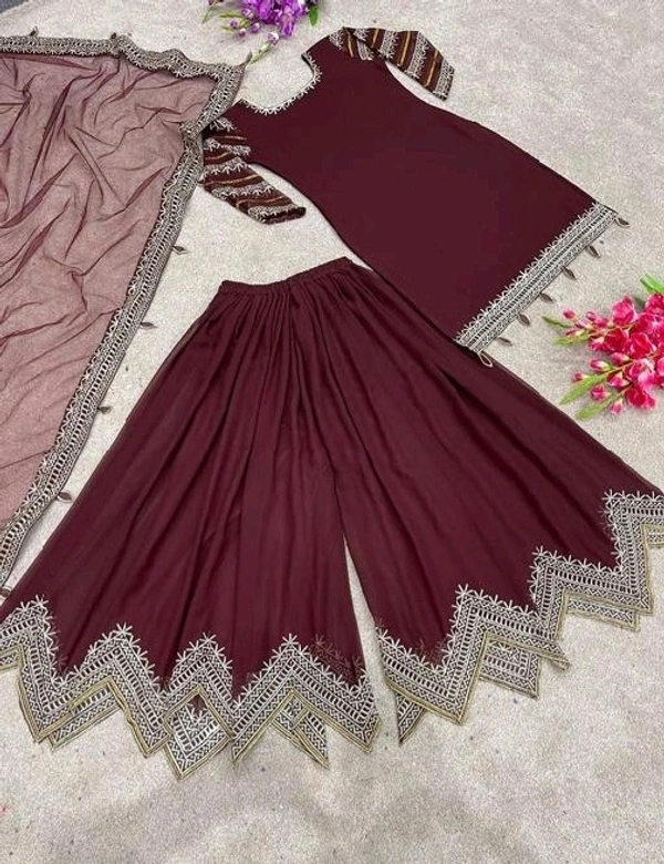 Sharara Fabrics :Faux Georgette With Heavy Embroidery Work And Fancy Cut Work